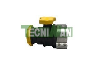Válvula blanca de bola hembra con rosca macho + palanca amarilla y tapón amarillo