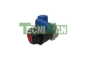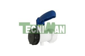 Válvula blanca de bola hembra con rosca macho + palanca azul y tapón negro
